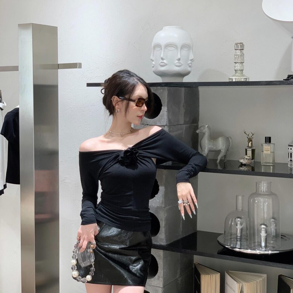 Off-Shoulder Black Long Sleeve Top – Elegant Partywear