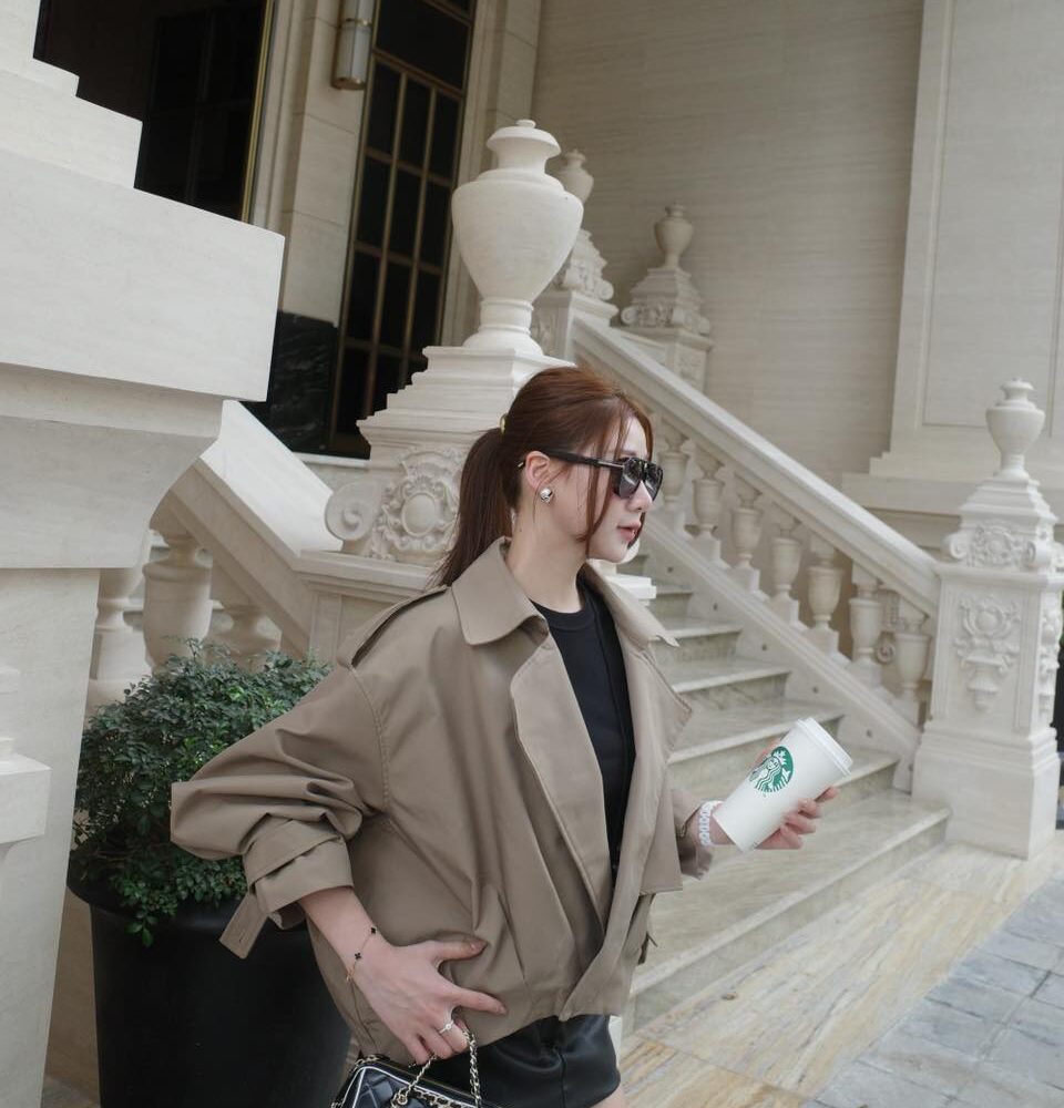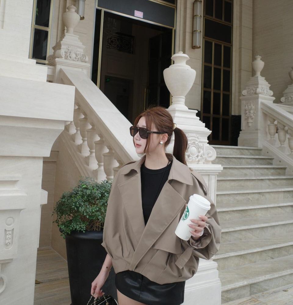 Oversized Khaki Jacket with Black Mini Skirt – Street Luxe Coffee Look